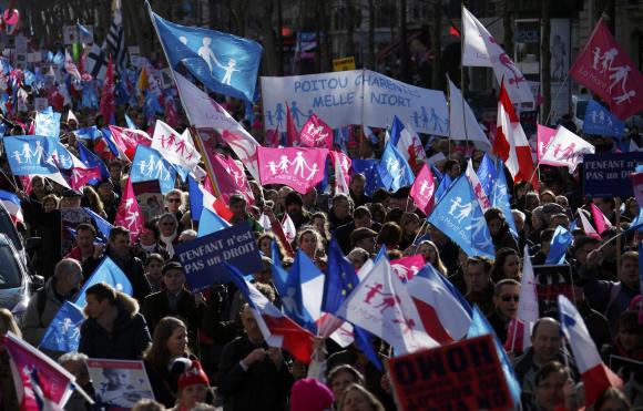 Protesters gather in Paris to oppose same-sex marriage
