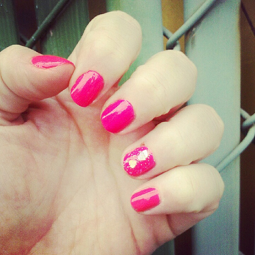I have been a fan of the accent finger for a long time, mostly because I love glitter polish but find the removal a hassle so it’s easier when it’s only on one finger. Thus, I tend to do an accent finger with glitter. But ever since Femme Flagging with nail polish has been trending my flags have been called out multiple places, including instagram and at parties, by other Femmes. It’s always really nice to be seen.